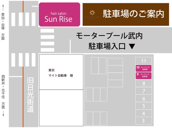 サンライズでは駐車場をご用意しております。お車でご来店の際には